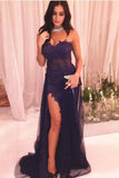Sexy Purple Lace Appliques See Through Front Slit Sweetheart Prom Dress For Evening Party PFP0833