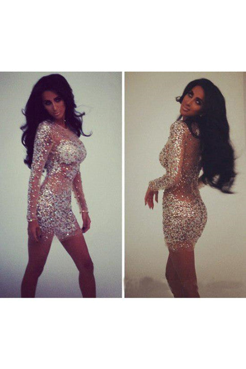 Sexy Short Sheath Mini Long Sleeves Homecoming Dress,Graduation Cocktail Dresses PFH0136
