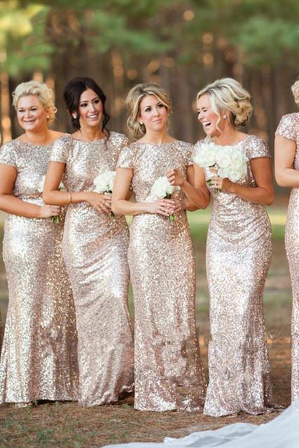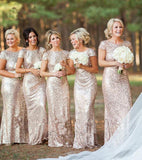 Sexy Short Sleeves Sequins Bling Long Bridesmaid Dresses 2019 PFB0067
