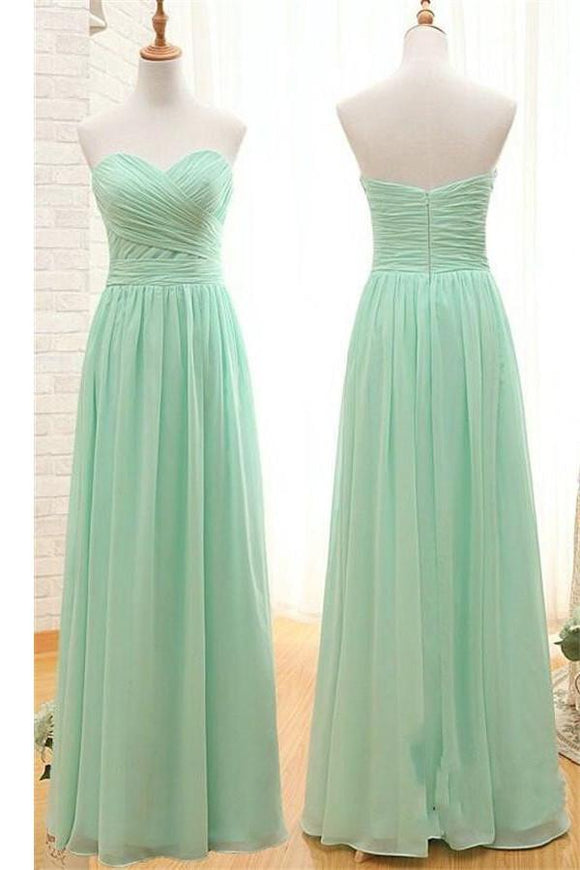 Simple Sweetheart Long Chiffon Mint Green Bridesmaid Prom Dresses PFB0085