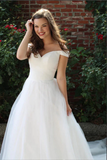 Simple White Tulle A line Off the Shoulder Wedding Dresses, Bridal Gowns PFW0639