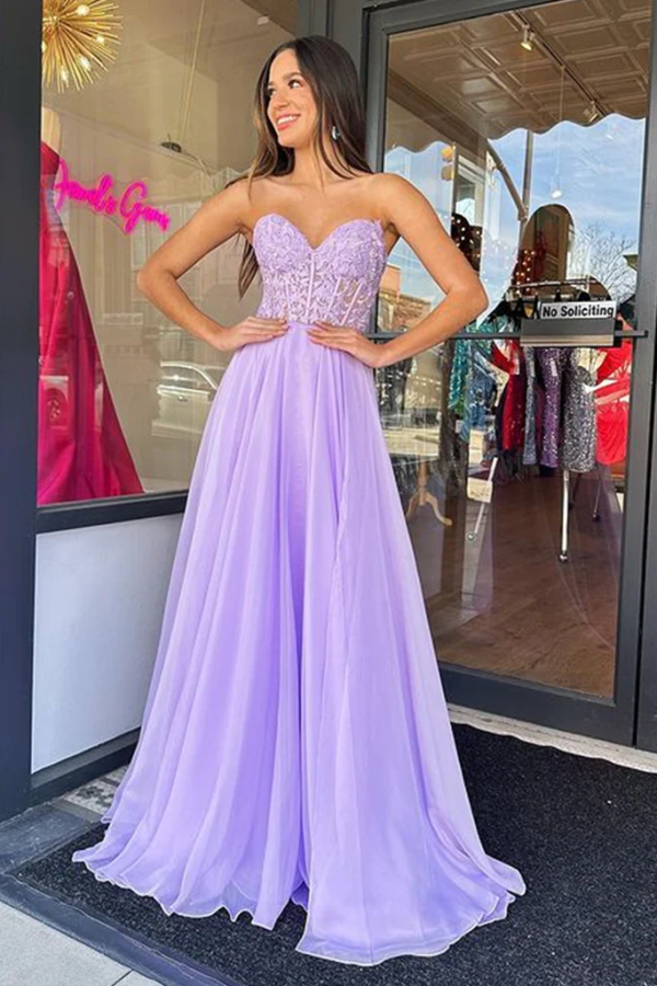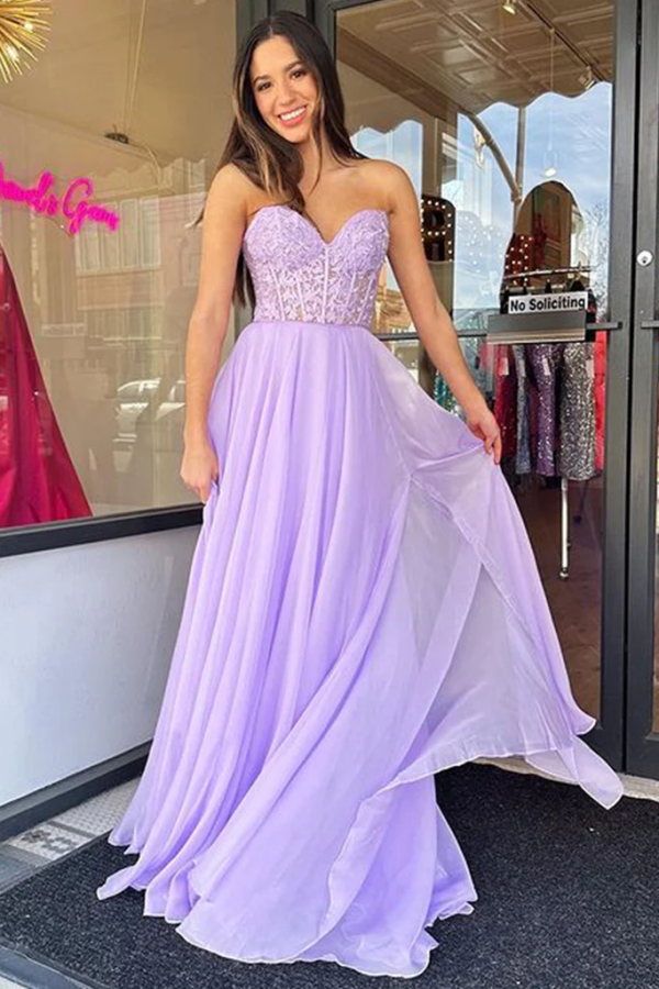 Strapless Sweetheart Neck Purple Lace Long Prom Dress, Lavender Lace Formal Dress, Lilac Evening Dress PFP2357