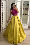 Stunning A Line Satin Yellow Beaded Sleeveless Long Prom Dresses PFP0614