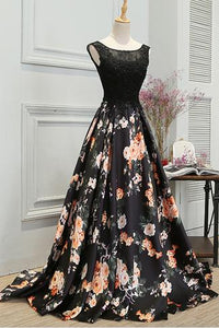 Stylish A Line Long Floral Printed Prom Dress,Formal Evening Dress PFP0415
