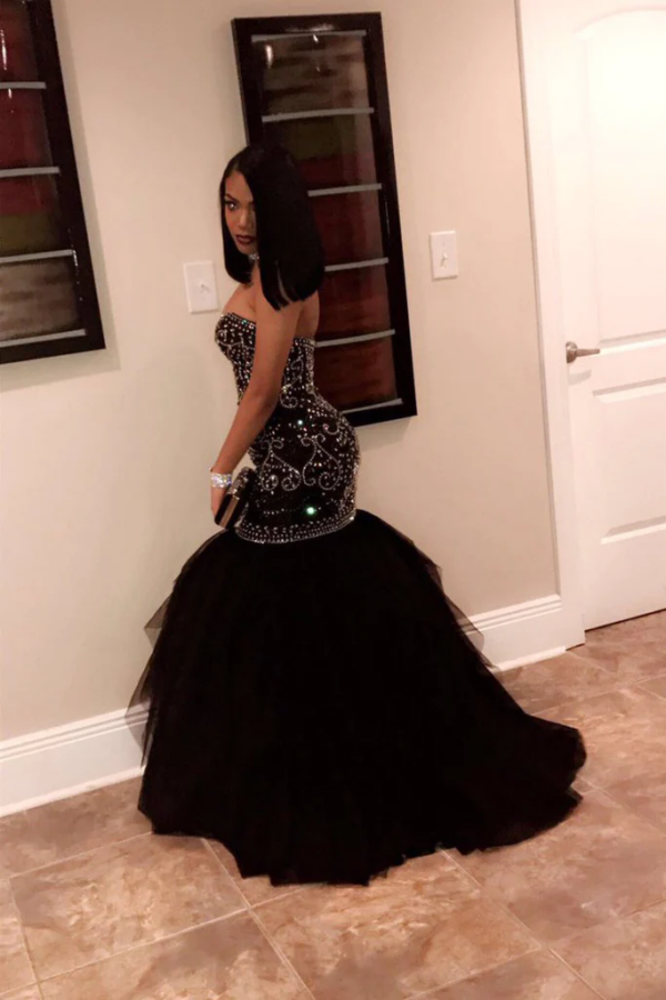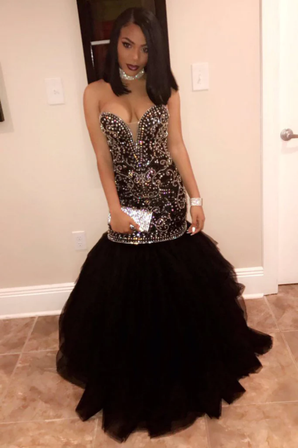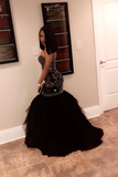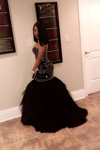 Sweetheart Beaded Bodice Prom Dresses Mermaid Tulle Sweep Train PFP2417