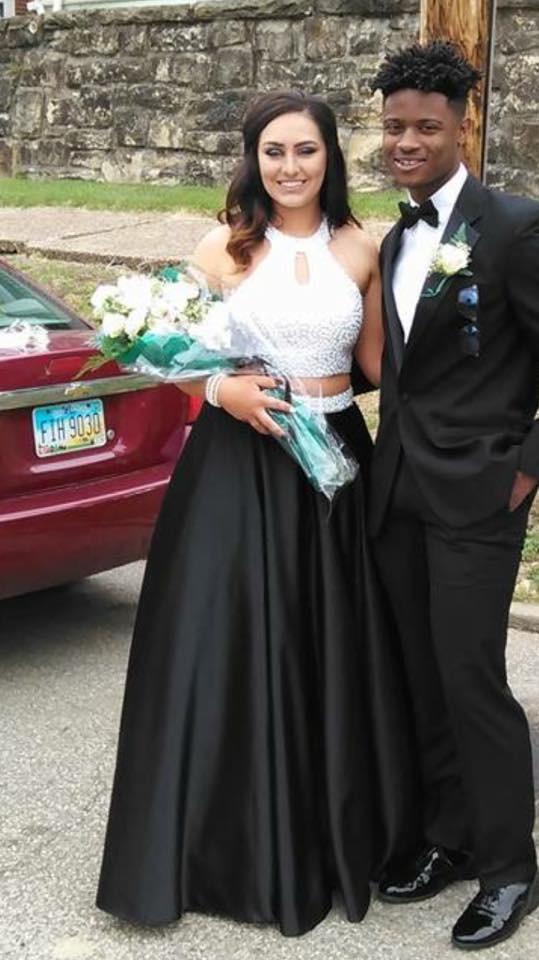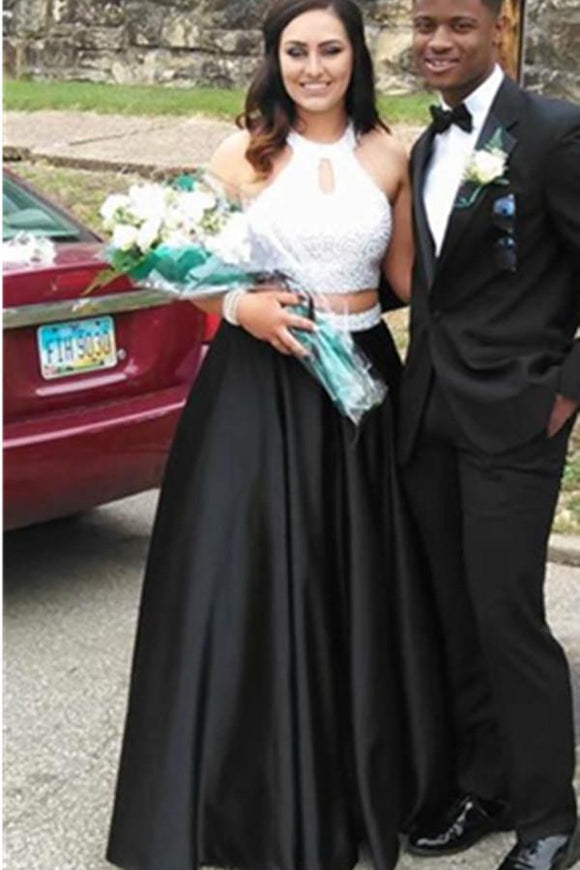 Two Pieces White Top Black Skirt Beading A-line Wedding Prom Dresses PFP1144