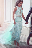 Unique Two Pieces Lace Tulle Long Prom Dress,Formal Evening Dresses PFP0298