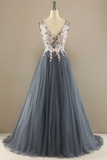 V Neck Ball Gown Tulle Prom Dress Floral Lace Party Dress PFP2305