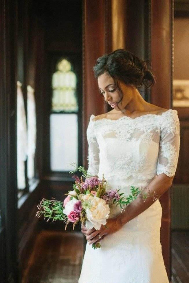 Vintage Half Sleeve Off-The-Shoulder Lace Wedding Jacket PFSW0001