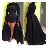 Vintage Long Sleeve Sexy Black A-Line Lace Satin Prom Dresses PFP0167