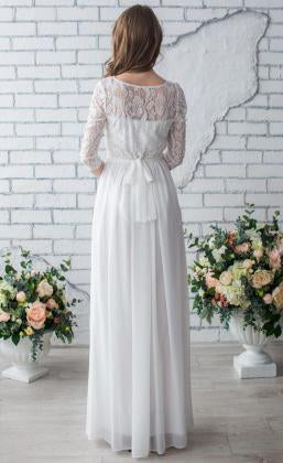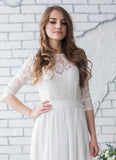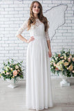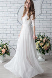White Long Half Sleeve Chiffon Wedding Dress,Lace Beach Floor-Length Bridal Dress PFW0154