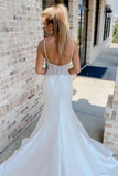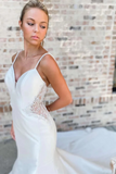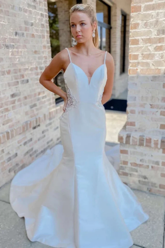 White V Neck Beading Trumpet Long Wedding Dress Bridal Gown PFW0646