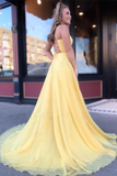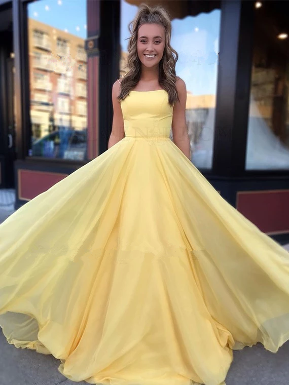 Yellow Long Chiffon A Line Prom Dresses 2020 with Lace Up Back PFP1717
